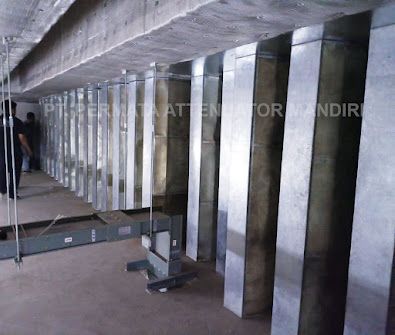 Jika Discharge Attenuator di pasang di depan Radiator maka bagian Attenuator yang besar ada didekat Radiator dan yang kecil menghadap luar. Jika Discharge Attenuator di pasang di shaft dalam ruangan opening maka bagian yang besar di pasang dibawah dan yang kecil dipasang di atas.