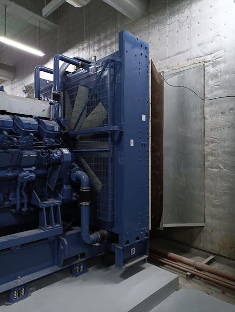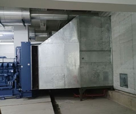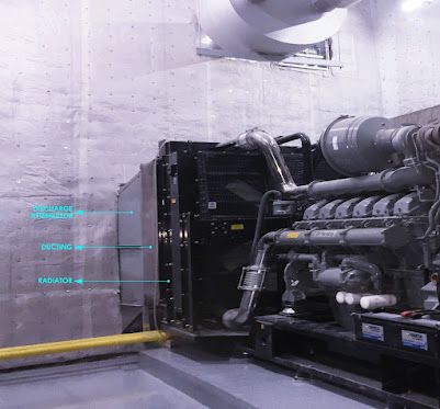 Tempat dipasang Discharge Attenuator di depan Radiator Genset atau di Shaft dalam ruangan opening setelah Radiator. Antara Radiator dengan Discharge Attenuator diberi sekat dengan Ducting agar jika perlu maintenance radiator bisa lewat ducting tersebut. Fungsi dari Discharge Attenuator adalah meredam suara yang dihasilkan oleh Radiator dan Mesin Genset.